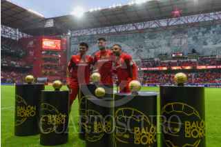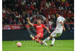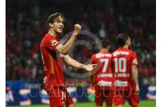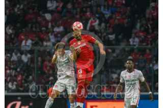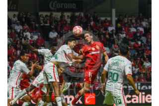 TOLUCA, ESTADO DE MÉXICO, 12JULIO2025.- Luan García defensa de los Diablos de Toluca y Agustín Palavecino medio de los Rayos del Necaxa, durante el partido correspondiente a la jornada 1 del Torneo Apertura 2025 de la Liga MX. El encuentro culminó con un marcador 3-1 favor de la escuadra escarlata. FOTO: CRISANTA ESPINOSA AGUILAR /CUARTOSCURO.COM