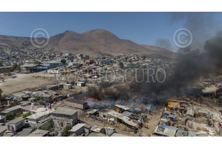 TIJUANA BAJA CALIFORNIA 13JULIO2025.- Imagen aérea del incendio que consumió 15 viviendas en Terrazas del Valle. Un incendio en la colonia Terrazas del Valle consumió al menos 15 viviendas, además de vehículos y animales. No hubo heridos graves, aunque un bombero resultó lesionado por la explosión de un neumático. Al lugar acudieron 30 bomberos y seis máquinas para controlar el fuego, que presuntamente inició en la parte alta de la colonia. FOTOS OMAR MARTÍNEZ /CUARTOSCURO.COM
