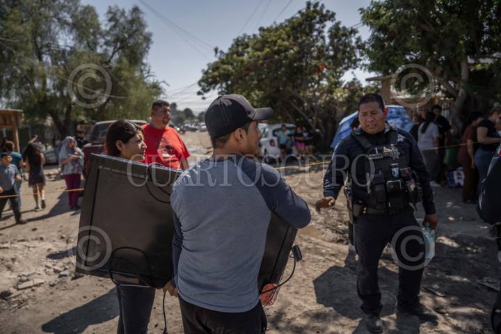 TIJUANA BAJA CALIFORNIA 13JULIO2025.- Hombre con televisor en las manos luego de sacar algunas pertenencias de su vivienda. Un incendio en la colonia Terrazas del Valle consumió al menos 15 viviendas, además de vehículos y animales. No hubo heridos graves, aunque un bombero resultó lesionado por la explosión de un neumático. Al lugar acudieron 30 bomberos y seis máquinas para controlar el fuego, que presuntamente inició en la parte alta de la colonia. FOTOS OMAR MARTÍNEZ /CUARTOSCURO.COM