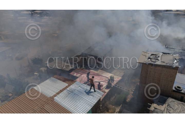 TIJUANA BAJA CALIFORNIA 13JULIO2025.- Vecinos intentan ayudar a bomberos a sofocar las llamas de un siniestro. Un incendio en la colonia Terrazas del Valle consumió al menos 15 viviendas, además de vehículos y animales. No hubo heridos graves, aunque un bombero resultó lesionado por la explosión de un neumático. Al lugar acudieron 30 bomberos y seis máquinas para controlar el fuego, que presuntamente inició en la parte alta de la colonia. FOTOS OMAR MARTÍNEZ /CUARTOSCURO.COM