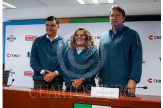CIUDAD DE MÉXICO, 14JULIO2025.- María José Alcará, periodista; Carlos Mercenario Carbajal, jefe de misión “Asunción 2025” y Mario García de la Torre, secretario general durante conferencia de presentación en la cual dieron los pormenores de la participación de México en los II Juegos Panamericanos Junior Asunción 2025, a celebrarse del 9 al 23 de agosto en Paraguay. FOTO: ANDREA MURCIA /CUARTOSCURO.COM