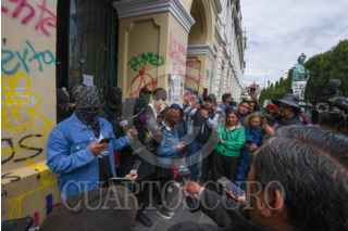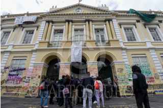 TOLUCA, ESTADO DE MÉXICO, 14JULIO2025.- Integrantes del Enjambre Estudiantil Unificado informó que ante la negativa de acudir a la Casa del Estudiante de las candidatas a rectoras de la UAEMéx no reconocen la legitimidad del proceso electoral en curso, así como posponer el proceso de elección que se realizará el 15 de julio y pasarlo hasta el 6 de agosto. FOTO: CRISANTA ESPINOSA AGUILAR/CUARTOSCURO.COM