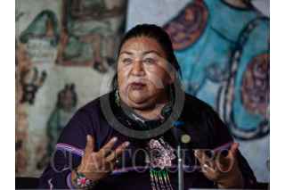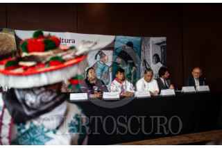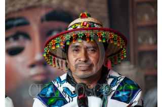 CIUDAD DE MÉXICO, 15JULIO2025.- Totupica Candelario, representante comunidad Wixárika inscripción de la Ruta Wixárika, a la lista del patrimonio mundial de la Unesco, que se llevó a cabo en el Museo de Antropología. FOTO: ANDREA MURCIA /CUARTOSCURO.COM