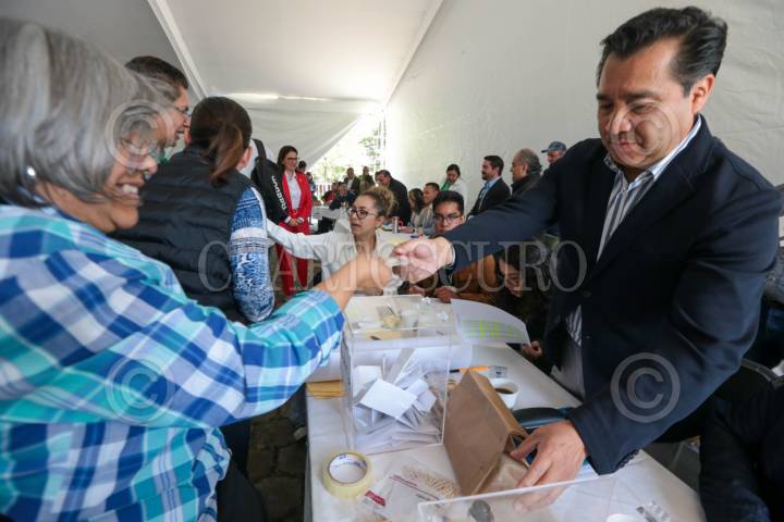 TOLUCA, ESTADO DE MÉXICO, 15JULIO2025.- Universitarios que participan en el Proceso de Elección de Rectoría de la UAEMéx Periodo Ordinario 2025-2029 en la sede ENEF. FOTO: CRISANTA ESPINOSA AGUILAR/CUARTOSCURO.COM