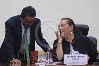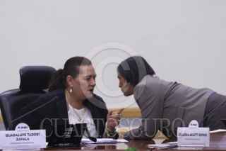 CIUDAD DE MÉXICO, 15JULIO2025.- Guadalupe Taddei Zavala, consejera presidenta del Instituto Nacional Electoral, y Claudia Arlett Espino, secretaria ejecutiva, conversaron durante la votación en la Sesión Extraordinaria del Consejo General del INE. FOTO: GRACIELA LÓPEZ/CUARTOSCURO.COM