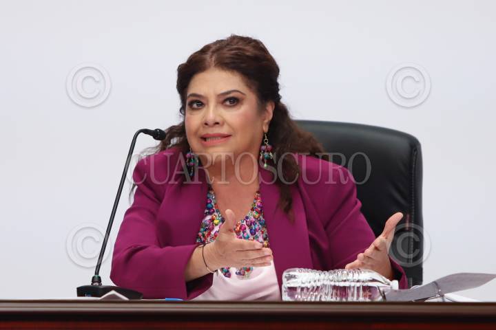 CIUDAD DE MÉXICO, 15JULIO2025.- Clara Brugada, jefa de gobierno de la capital, responde las preguntas de la prensa durante la conferencia que encabezó esta mañana. FOTO: DANIEL AUGUSTO/ CUARTOSCURO.COM