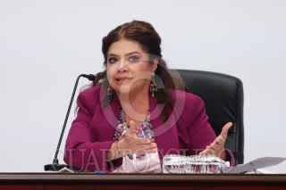 CIUDAD DE MÉXICO, 15JULIO2025.- Eréndira Cruzvillegas, consejera jurídica de la jefatura de gobierno, estuvo presente en la conferencia que encabezó la mandataria capitalina, Clara Brugada. FOTO: DANIEL AUGUSTO/ CUARTOSCURO.COM
