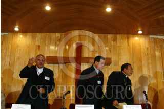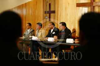 CUAUTITLÁN IZCALLY, ESTADO DE MÉXICO.- El Episcopado Mexicano ofreció una conferencia de prensa acerca de la situación del estado de Tabasco, después de las recientes inundaciones. El obispo del Valle de Chalco, Luis Artemio Flores, El obispo auxiliar de Monterrey, Gustavo Rodriguez y el obispo de Tabasco Benjamín Castillo estuvieron presentes. FOTO: PAOLA HIDALGO/CUATOSCURO.COM