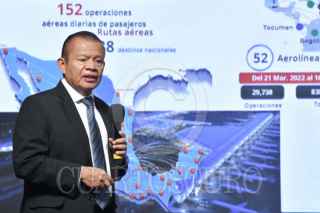 CIUDAD DE MÉXICO, 16JULIO2025.- Óscar David Lozano Águila, director general del Tren Maya, durante su intervención en la conferencia matutina realizada en Palacio Nacional en la que se dieron detalles de la oferta turística de la ruta del Tren Maya. FOTO: MARIO JASSO/CUARTOSCURO.COM