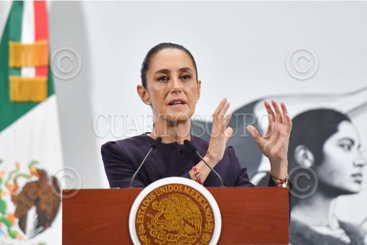 CIUDAD DE MÉXICO, 16JULIO2025.- Claudia Sheinbaum, presidenta de México, durante la conferencia matutina realizada en Palacio Nacional en la que se compartieron detalles de la oferta turística de la ruta del Tren Maya; estadísticas en las operaciones del Aeropuerto Internacional Felipe Ángeles (AIFA), además de responder preguntas por parte de los representantes de medios de comunicación. FOTO: MARIO JASSO/CUARTOSCURO.COM