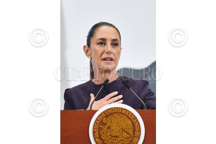CIUDAD DE MÉXICO, 16JULIO2025.- Claudia Sheinbaum, presidenta de México, durante la conferencia matutina realizada en Palacio Nacional en la que se compartieron detalles de la oferta turística de la ruta del Tren Maya; estadísticas en las operaciones del Aeropuerto Internacional Felipe Ángeles (AIFA), además de responder preguntas por parte de los representantes de medios de comunicación. FOTO: MARIO JASSO/CUARTOSCURO.COM