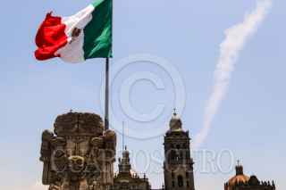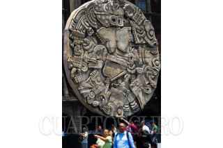 CIUDAD DE MÉXICO. 16JULIO2025.- Imágenes prehispánicas alusivas a la gran Tenochtitlán, en el Zócalo de la Capital Mexicana. FOTO: VICTORIA VALTIERRA/CUARTOSCURO.COM