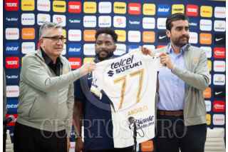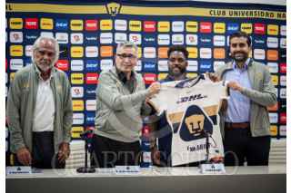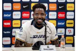 CIUDAD DE MÉXICO, 16JULIO2025.- Álvaro Ángulo, nuevo jugador de Pumas, acompañado de Luis Raúl González Pérez, presidente club UNAM y Eduardo Saracho Sánchez, director de estrategia deportiva Club UNAM, encabezaron conferencia de prensa. FOTO: ANDREA MURCIA /CUARTOSCURO.COM