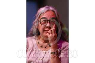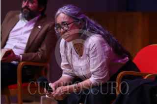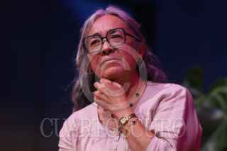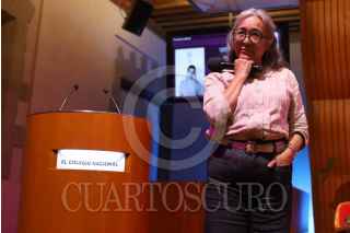 CIUDAD DE MÉXICO, 16JULIO2025.- La escritora Cristina Rivera Garza presentó esta noche sus libros "Andamos Perras, Andamos Diablas" y "Las Chicas Muertas Hablan al Unísono", esto en las instalaciones de El Colegio Nacional. FOTO: DANIEL AUGUSTO/ CUARTOSCURO.COM
