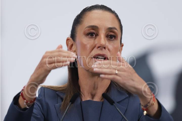 CIUDAD DE MÉXICO, 17JULIO2025.- Claudia Sheinbaum, presidenta de México, durante la conferencia del pueblo de este jueves en Palacio Nacional. FOTO: DANIEL AUGUSTO/ CUARTOSCURO.COM