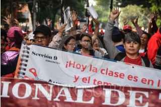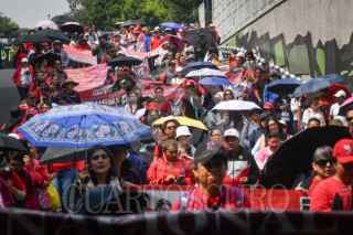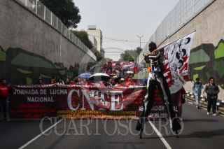 CIUDAD DE MÉXICO, 17JULIO2025.- Maestros de la Coordinadora Nacional de Trabajadores de la Educación (CNTE) realizaron una marcha que partió de la Unidad de Administración y Finanzas de la Autoridad Educativa Federal de la Ciudad de México (AEFCM) rumbo al zócalo capitalino para exigir al gobierno federal la devolución de los días de salario que les descontaron por haber participado en el paro laboral de hace un mes. FOTO: MARIO JASSO/CUARTOSCURO.COM