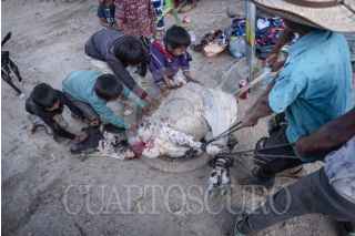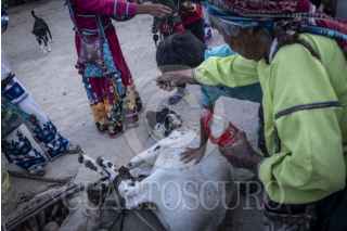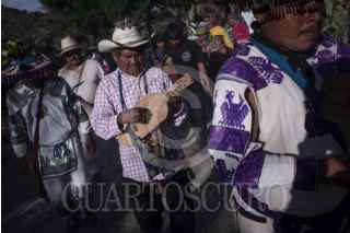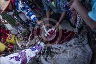 MEZQUITIC, JALISCO, 19JULIO2025.- Se realizó la ceremonia Hikuri Neixa, conocida también como "danza del peyote", en un patio familiar de la comunidad de La Laguna, municipio de Mezquitic. Como parte de esta tradicional ritual del pueblo wixarika, vulgarmente conocido como huichol, además de beberse un licuado de peyote triturado con la ayuda de un metate, se tomó tejuino y cerveza, y se danzó y cantó hasta la madrugada, y se sacrificó una vaca. La ceremonia, a su vez, marca el comienzo del nuevo ciclo agrícola. FOTO: PEDRO ANZA /CUARTOSCURO.COM
