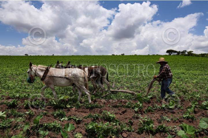 FRESNILLO, ZACATECAS, 20JULIO2025.- Eleopoldo Moreno y su hijo trabajan la milpa con yunta de burros en la comunidad de “El Angelito”. A pesar del avance de la tecnología agrícola, algunos campesinos de temporal siguen utilizando métodos tradicionales, como la yunta, por su precisión en el trazo de los surcos y la conservación de la tierra. Tras las lluvias recientes y con parte de la milpa ya sembrada, Eleopoldo y su hijo repasan los surcos para eliminar maleza y asegurar que los cultivos, principalmente maíz, frijol y calabaza, crezcan en condiciones óptimas. Este trabajo, aunque físicamente demandante, es parte fundamental del calendario agrícola de temporal, donde se depende completamente del ciclo de lluvias para lograr una buena cosecha. FOTO: ADOLFO VLADIMIR /CUARTOSCURO.COM