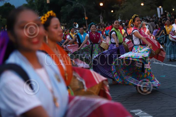 OAXACA, OAXACA, 20JULIO2025.- Este fin de semana de llevó a cabo el primer desfile de regiones de Oaxaca previo al Lunes de Cerro como parte de las actividades de la Guelaguetza 2025, al ritmo de música, danza y bailes tradicionales y enfundados en sus trajes regionales,avanzaron las 16 culturas originarias y el pueblo afromexicano por las calles principales de la capital oaxaqueña. FOTO: DANIEL AUGUSTO/ CUARTOSCURO.COM
