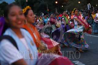 OAXACA, OAXACA, 20JULIO2025.- Este fin de semana de llevó a cabo el primer desfile de regiones de Oaxaca previo al Lunes de Cerro como parte de las actividades de la Guelaguetza 2025, al ritmo de música, danza y bailes tradicionales y enfundados en sus trajes regionales,avanzaron las 16 culturas originarias y el pueblo afromexicano por las calles principales de la capital oaxaqueña. FOTO: DANIEL AUGUSTO/ CUARTOSCURO.COM