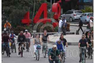CIUDAD DE MÉXICO, 20JULIO2025.- Jovenes acudieron a rodar en bcicleta durante el Paseo Dominal Muévete en Bici en Paseo de la Reforma. FOTO: GRACIELA LÓPEZ/CUARTOSCURO.COM