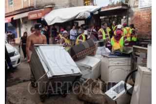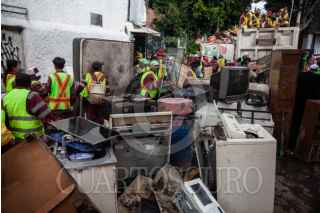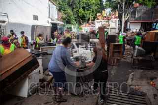 CIUDAD DE MÉXICO, 20JULIO2025.– Vecinos apoyan en el desalojo de viviendas dañadas por las lluvias de ayer en la calle Hortencia, alcaldía Magdalena Contreras. FOTO: ANDREA MURCIA/CUARTOSCURO.COM