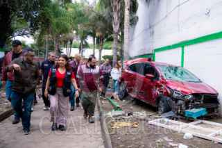 CIUDAD DE MÉXICO, 2OJULIO2015.-Clara Brugada, jefa de Gobierno, encabezó una conferencia de prensa en la que informó que hubo atención inmediata a las familias que habitan los 87 inmuebles afectados por las lluvias que se registraron ayer en la alcaldía La Magdalena Contreras, y que alcanzaron 60.7 milímetros. FOTO: GOBIERNO DE LA CIUDAD DE MÉXICO /CUARTOSCURO.COM