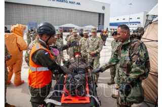 SANTA LUCIA, ESTADO DE MÉXICO, 21JULIO2025.- Ejército Mexicano encabezó Conferencia de Ejércitos Americanos en Ceremonia de apertura de Ejercicio de Ayuda Humanitaria “Operación Péekáamba” que se llevó a cabo en el Aeropuerto Internacional Felipe Ángeles (AIFA). FOTO: ANDREA MURCIA /CUARTOSCURO.COM