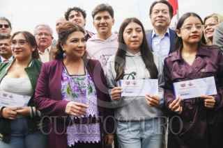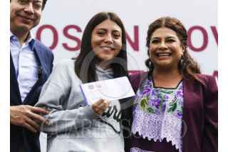 CIUDAD DE MÉXICO. 21JULIO2025.- CLara Brugada Molina, jefa del Gobierno de la Ciudad, entrego, a jovenes universitarios una beca para transporte. Y anunció apoyos de otros programas sociales y asi contribuir a hacer una Capital más preparada. FOTO: VICTORIA VALTIERRA/CUARTOSCURO.COM