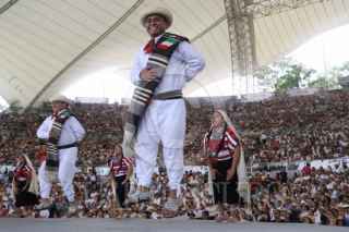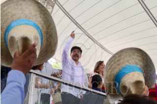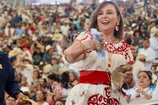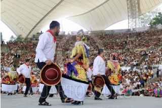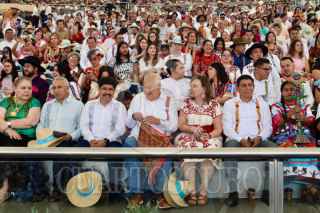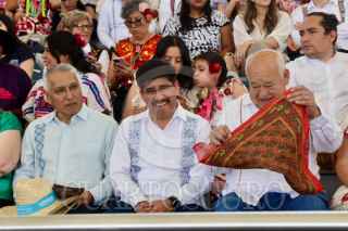 OAXACA DE JUÁREZ, OAXACA, 21 JUNIO 2025.- Hugo Aguilar Ortiz, ministro presidente electo de la Suprema Corte de Justicia de la Nación; Víctor Manuel Castro Cosío, gobernador de Baja California Sur; Rocío Nahle, gobernadora de Veracruz; y Salomón Jara, gobernador de Oaxaca, presenciaron el inicio de la primera función de los Lunes del Cerro en el Auditorio Guelaguetza. El evento reúne a comunidades de las ocho regiones del estado como parte de una muestra cultural. FOTO: CAROLINA JIMÉNEZ MARISCAL/CUARTOSCURO.COM