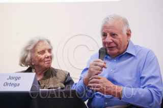 CIUDAD DE MÉXICO, 21JULIO2025.- Basilio Rodríguez, editor; Felipe Haro Poniatowski, director de la Fundación Elena Poniatowska Amor A.C.; Elena Poniatowska, escritora, y Jorge Ortega, apoderado legal de la Fundación Ventosa-Arrufat, durante la presentación de los ganadores de la quinta edición del Concurso Iberoamericano de Cuenta y Novela, impulsado por la Fundación Ventosa-Arrufat y la Fundación Elena Poniatowska Amor, A.C.. "El Quimerista" de Alfonso Suárez Romero fue la ganadora en la modalidad de novela. FOTO: MOISÉS PABLO/CUARTOSCURO.COM