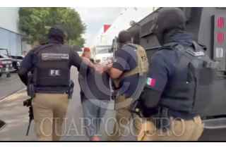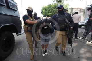 TONALÁ, JALISCO, 21 JULIO 2025.- Kevin “N” fue detenido por su presunta responsabilidad en el feminicidio de Karla Bañuelos. La captura se realizó en la colonia Loma Dorada de Tonalá, desde donde fue trasladado en un vehículo tipo “Rhino” al penal de Puente Grande, Jalisco, para su audiencia inicial. El fallecimiento de la joven fue registrado por una cámara de vigilancia, donde se observa al imputado utilizando un arma de alto poder. FOTO: FISCALÍA DEL ESTADO DE JALISCO / CUARTOSCURO.COM