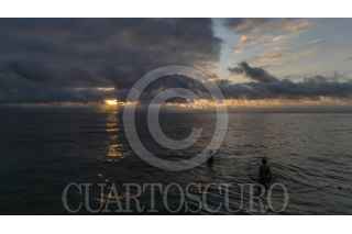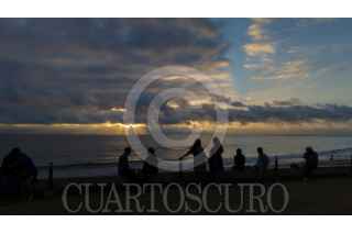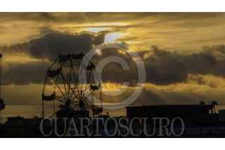 TIJUANA, BAJA CALIFORNIA, 21 JULIO 2025.- Atardecer visto desde el malecón de Playas de Tijuana, lugar al que acuden personas a pasear, hacer ejercicio y observar el entorno. En la imagen una rueda de la fortuna. FOTO: OMAR MARTÍNEZ / CUARTOSCURO.COM