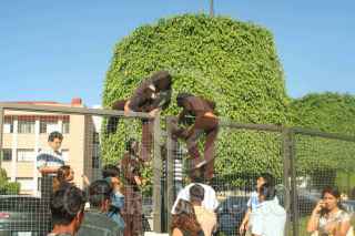 CHILPANCINGO, GUERRERO., 14NOVIEMBRE2007. Trabajadoras del Congreso local, se brincan las rejas que rodean al poder legislativo, ante el bloqueo a los accesos que mantenian egresados de la normal rural de Ayotzinapa apoyados por estudiantes de diversas normales rurales del pais que integran la Federacion de Estudiantes Campesinos Socialistas de Mexico (FECSM), para exigir la entrega de plazas. FOTO: OSCAR ALVARADO/CUARTOSCURO.COM