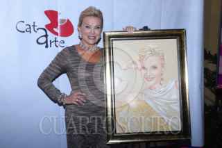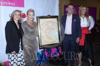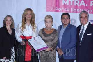CIUDAD DE MÉXICO, 22JULIO2025. Blanca Pinedo; el pintor Rafael Corro y Alejandra del Río Avila, presidenta de Mujeres en el poder posan junto a Raquel Bessudo reconocida por la asociación “Mujeres en el poder”, en la Alcaldía Miguel Hidalgo. FOTO: EDGAR NEGRETE LIRA/CUARTOSCURO.COM