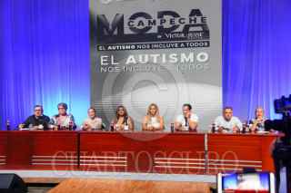 CAMPECHE, CAMPECHE, 22JULIO2025.- Los diseñadores Víctor y Jesse Martínez, en compañía de reconocidos artistas como Aida Cuevas, Kimberly "La Más Preciosa", Cecy Gutiérrez y Cristián de la Fuente, presentaron el evento con causa "Moda Campeche, el autismo nos incluye a todos". La pasarela se realizará este miércoles en el Centro de Convenciones Campeche XXI, donde también se contará con la participación de artistas como Yuri y Paty Navidad. Todo lo recaudado estará destinado a apoyar el autismo. FOTO: MICHAEL BALAM/CUARTOSCURO.COM