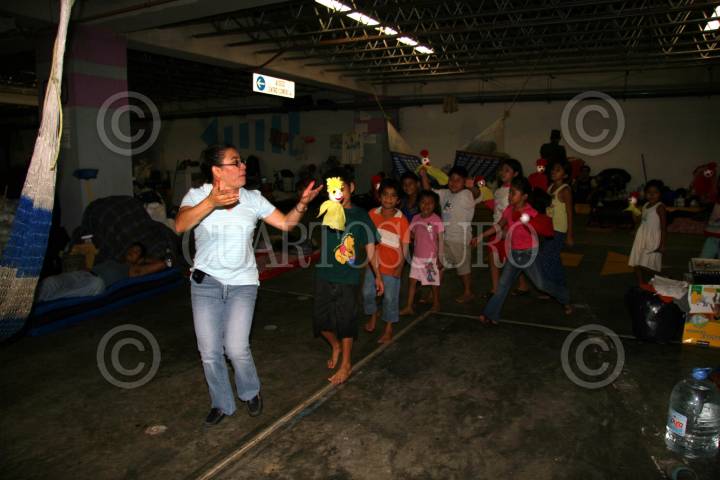 VILLAHERMOSA, TABASCO, 14NOVIEMBRE2007.- Tabasqueños damnificados que se encuentran albergados en los estacionamientos de la plaza Galeria Tabasco Dos Mil, tienen apoyo como de peluqueria, eduacacion didactica, peliculas infantiles y cultura de belleza. FOTO: MARCO POLO GUZMÁN HERNÁNDEZ/CUARTOSCURO.COM