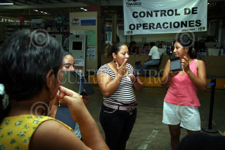 VILLAHERMOSA, TABASCO, 14NOVIEMBRE2007.- Tabasqueños damnificados que se encuentran albergados en los estacionamientos de la plaza Galeria Tabasco Dos Mil, tienen apoyo como de peluqueria, eduacacion didactica, peliculas infantiles y cultura de belleza. FOTO: MARCO POLO GUZMÁN HERNÁNDEZ/CUARTOSCURO.COM