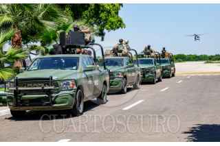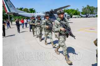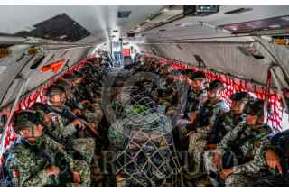 CULIACÁN, SINALOA, 23JULIO2025.- Arriban a Culiacán 150 Elementos de la Brigada de Fusileros Paracaidistas fue esta mañana que aterrizaron 4 aeronaves procedentes del centro del país en la Base Aérea No. 10, con este despliegue suman ya 300 elementos de fuerzas especiales que en menos de 48 horas han llegado a Culiacán. La llegada de los nuevos contingentes militares a Culiacán responde directamente a las instrucciones giradas por la presidenta Claudia Sheinbaum durante su visita oficial del pasado 11 de julio, en la que refrendó el compromiso federal de reforzar la seguridad en Sinaloa. Esta acción también se alinea con el anuncio realizado por el secretario de Seguridad y Protección Ciudadana, Omar García Harfuch, quien el domingo 20 de julio encabezó la conferencia del Gabinete de Seguridad en la Base Aérea Militar No. 10, donde confirmó que el despliegue de fuerzas especiales será constante y estratégico, como parte de una política de presencia quincenal en la entidad para contener la violencia y recuperar la paz en zonas prioritarias. FOTO: JOSÉ BETANZOS ZÁRATE/CUARTOSCURO.COM