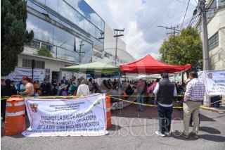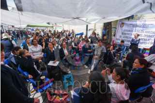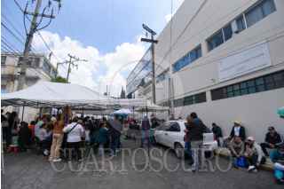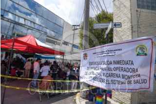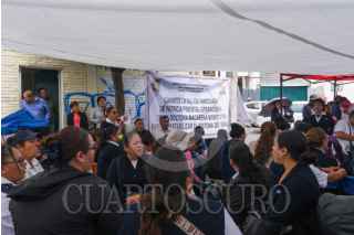 TOLUCA, ESTADO DE MÉXICO 23JULIO2025.- Trabajadores del sector Salud mantienen un plantón desde hace más de una semana frente a la Jurisdicción Sanitaria de Toluca, en espera de una mesa de diálogo con autoridades. Permanecen bajo estructuras improvisadas para resguardarse del sol, mientras solicitan la atención de sus demandas relacionadas con pagos pendientes, abastecimiento de medicamentos e insumos médicos, entre otros temas. FOTO:CRISANTA ESPINOSA AGUILAR /CUARTOSCURO.COM