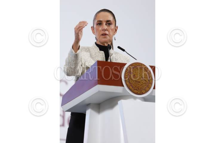CIUDAD DE MÉXICO, 24JULIO2025.- La presidenta de México, Claudia Sheinbaum, durante la conferencia del pueblo donde respondió las preguntas de la prensa. FOTO: DANIEL AUGUSTO/ CUARTOSCURO.COM