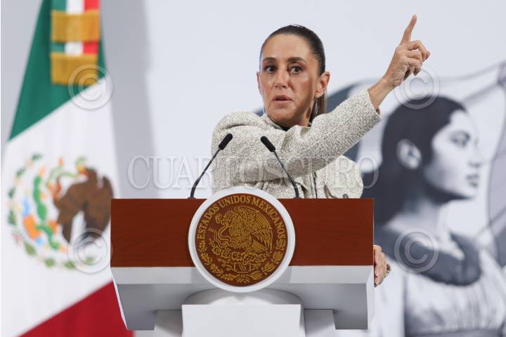 CIUDAD DE MÉXICO, 24JULIO2025.- Claudia Sheinbaum, presidenta de México, durante la conferencia del pueblo de este jueves en Palacio Nacional, donde respondió las preguntas de la prensa. FOTO: DANIEL AUGUSTO/ CUARTOSCURO.COM