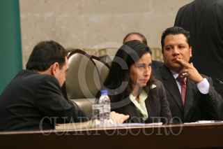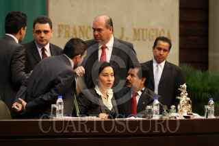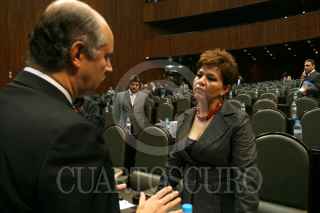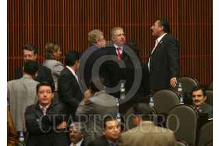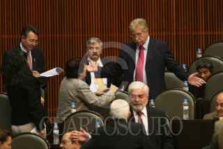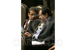 MÉXICO D.F. 14NOVIEMBRE2007.-Los diputados del PAN, Diodoro Carrasco y Hector Larios dialógan durante la sesión en la Cámara de Diputados. FOTO: GUILLERMO PEREA/CUARTOSCURO.COM