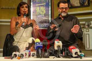 CIUDAD DE MÉXICO. 24JULIO2025.- Al cierre del festejo de los 15 años de la obra Toc Toc, el matrimonio de Biby Gaytán y Eduardo Capetillo ofreció una plática con medios de comunicación. FOTO: VICTORIA VALTIERRA/CUARTOSCURO.COM