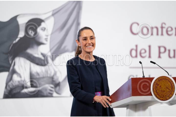 CIUDAD DE MÉXICO, 25JULIO2025.- Claudia Sheinbaum, presidenta de México, durante la conferencia matutina realizada en Palacio Nacional. FOTO: PRESIDENCIA/CUARTOSCURO.COM
