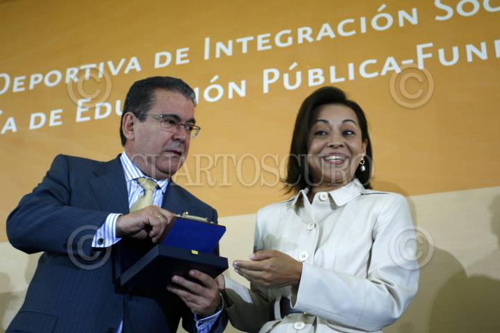 MÉXICO, D.F. 14NOVIEMBRE2007.- La secretaria de educación pública, Josefina Vasquez Mota firmó un convenio con el Club de futbol Real Madrid, en una escuela en Iztapalapa, donde llegó en helicóptero. FOTO:PAOLA HIDALGO/CUARTOSCURO.COM