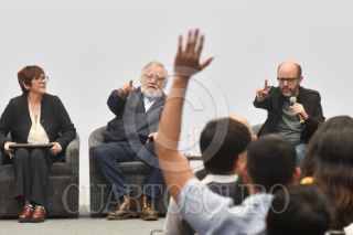 CIUDAD DE MÉXICO, 25JULIO2025.- Patricia Ramírez Kuri, titular del Instituto de Planeación Democrática y Prospectiva; Alejandro Encinas, titular de Planeación y Ordenamiento Territorial, e Inti Muñoz Santini, secretario de Vivienda, durante el foro del primer bando de gobierno "Por una ciudad habitable y asequible con identidad y arraigo local" realizado en las instalaciones del Museo de la Ciudad de México. Dicha iniciativa es una iniciativa que busca combatir la gentrificación y sus efectos negativos en la población. FOTO: MARIO JASSO/CUARTOSCURO.COM