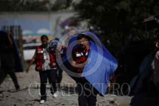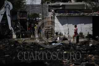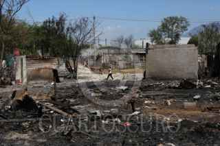 MONTERREY, NUEVO LEÓN, 25JULIO2025.- Un incendio ocurrido por la noche en la colonia San Martín al poniente de la ciudad de Monterrey, provocó que al menos 40 familias fueran evacuadas de un complejo de viviendas de tejabanes, de las cuales 20 fueron consumidas por el fuego. Los damnificados fueron asistidos para que pasaran la noche en albergues o con familiares, así mismo durante el día se les ha provisto de colchones, agua y comida. No hubo lesionados. FOTO: GABRIELA PÉREZ MONTIEL / CUARTOSCURO.COM