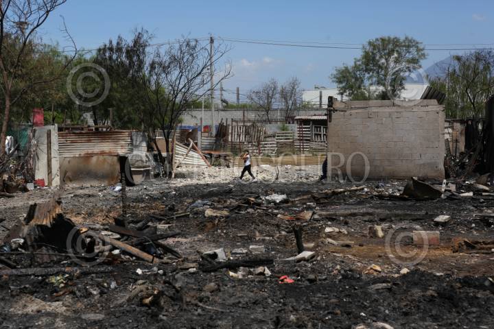 MONTERREY, NUEVO LEÓN, 25JULIO2025.- Una persona camina entre los escombros de las viviendas afectadas por el incendio de anoche. Un incendio ocurrido por la noche en la colonia San Martín al poniente de la ciudad de Monterrey, provocó que al menos 40 familias fueran evacuadas de un complejo de viviendas de tejabanes, de las cuales 20 fueron consumidas por el fuego. Los damnificados fueron asistidos para que pasaran la noche en albergues o con familiares, así mismo durante el día se les ha provisto de colchones, agua y comida. No hubo lesionados. FOTO: GABRIELA PÉREZ MONTIEL / CUARTOSCURO.COM