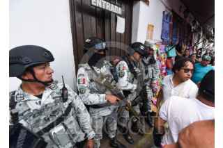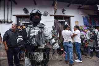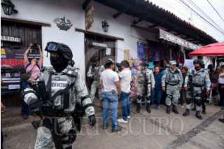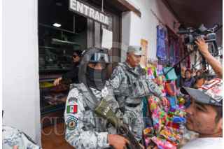 SULTEPEC, ESTADO DE MÉXICO, 25JULIO2025.- Elementos de la Guardia Nacional resguardan la entrada de la carnicería El Gallito en Sultepec que fue asegurada durante la Operación Liberación que se realizó en la zona sur del Estado de México. FOTO: CRISANTA ESPINOSA AGUILAR /CUARTOSCURO.COM